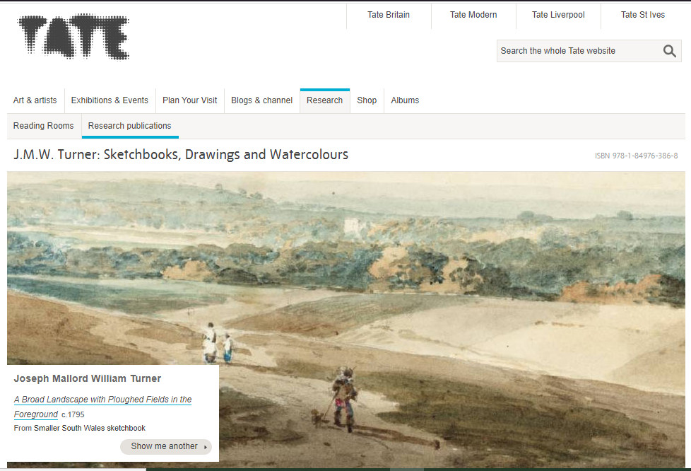 | Joseph Turner’s later sketchbooks cover color studies (studies of paint), and on location sketches. Earlier sketchbooks show copies of other artist’s work and mannered sketches of nature. All are exercises for larger paintings. A NY Times article of 1910 about Turner’s sketchbooks (and art works?) states, “a theory of art that demands something beyond the representation of nature, however managed, and the aim of which is intellectual satisfaction.” Late 18th and early 19th century. Watercolor, chalk, and pencil on unique paper. Artist: Joseph MW Turner. The collection of Turner’s sketchbooks online at the Tate. |