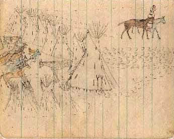 The Cayuse-Nez Percé Sketchbook, “is an important illustration of Native American art and history at a time when traditional native means of communication were discouraged by the policies of the government of the United States. This sketchbook, thirty-two drawings in a school composition book, is believed to be the last of these records, having been discovered in the early part of the 20th century, a time when this form of record-keeping had come to an end.” – from the Special Collections & University Archives, University of Oregon Libraries.