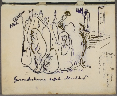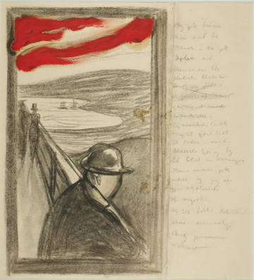 | This artist’s 200+ sketchbooks have a variety of techniques, i.e. realistic location drawings, farms and homes in the country, written stories, personal experiences, and the beginning of symbolic drawings, and compositions. Plus, drawings done when travelling. Amazing since Munch lived only until 28 yrs. old. Pencil. Artist: Edvard Munch. |