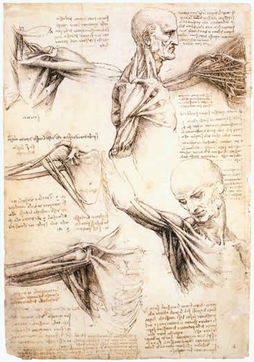 Intricate studies by Leonardo Da Vinci and his notes on human anatomy (human science), nature (natural sciences), etc. fill his sketchbooks. Most, if not all, are from observation and experiments to better understand what he draws and paints to achieve ideal representations of both human and natural worlds. We see his thinking through of volumes, forms, and perspective of architecture, but also the symbols and myths found in the religious and merchant worlds. His sketchbooks, and codices, are filled with sketches of his machine inventions for flight, for building cities, and for war.