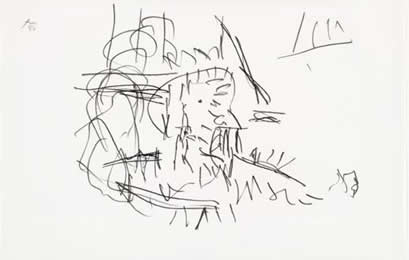 | The spontaneous art piece in Robert Motherwell’s Mexican Sketchbook, 1941 was noted as the first appearance of his ‘method’ of abstract painting. In 1984, he states of his Dedalus Sketchbook, ‘The procedure is a marvelous release when one is so often butting ones head against the stone wall of painting’. Various media, noted under the images. Artist: Robert Motherwell. |